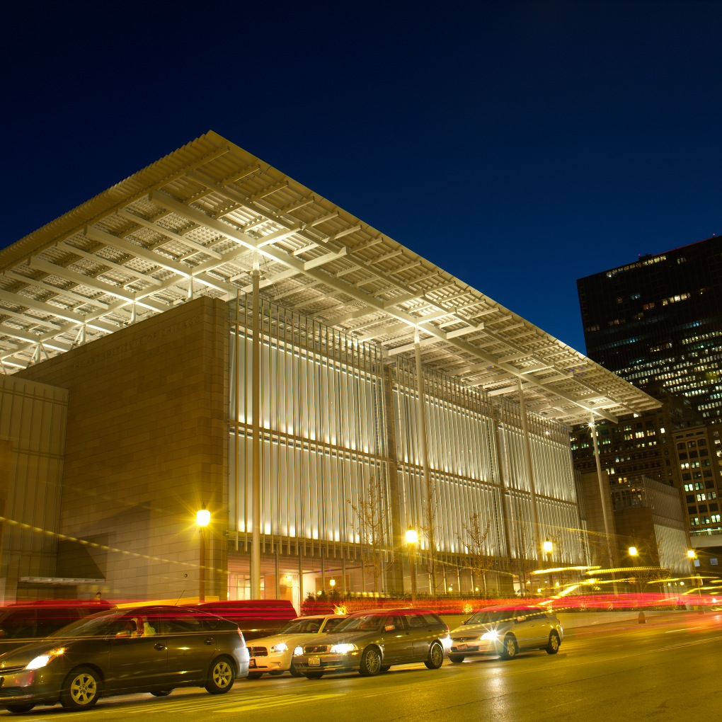 Architect Lorenzo Piano designed the Modern Wing to the Art Institute – daytime, the gallery light is perfect. Nighttime, the outside’s a gem.