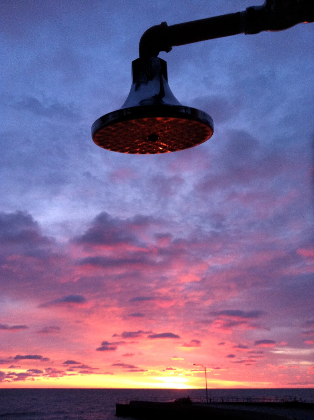 I took this picture while out on a run Friday morning, a welcome opportunity at the bottom of Tower Road Beach hill, before reluctantly running back UP Tower Road Beach hill. An hour or so later, as I checked my e-mail, I noticed a trickle. About Milton Friedman’s Salad. You can see where this is headed. The shower lasted three days, and for that I’ll be eternally grateful. Thank you, WordPress, for including me in Freshly Pressed. (Yes, the picture’s iphone, but the best camera is, as they say, the one you have with you).